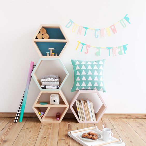 Aunque pueda parecer que por su forma las estanterías hexagonales cuesten de integrar en la decoración de nuestra casa, nada más lejos de la realidad. A natural son el complemento genial y típico de la decoración nórdica. También son ideales para las zonas infantiles y habitaciones de los más pequeños. ¡Seguro que les encantará tener sus cosas bien ordenadas en ellas! Podrás integrar tus estanterías hexagonales en la decoración de tu casa y si no las quieres colgar siempre puedes optar por apilarlas una encima de la otra desde el suelo para crear un original mueble auxiliar. O también tenerlas en el escritorio como mueble de almacenaje. ¡Son tantas las posibilidades!